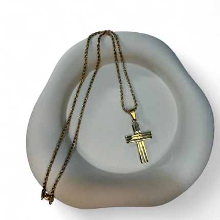 Ανδρικός σταυρός με χρυσή αλυσίδα από ανοξείδωτο ατσάλι