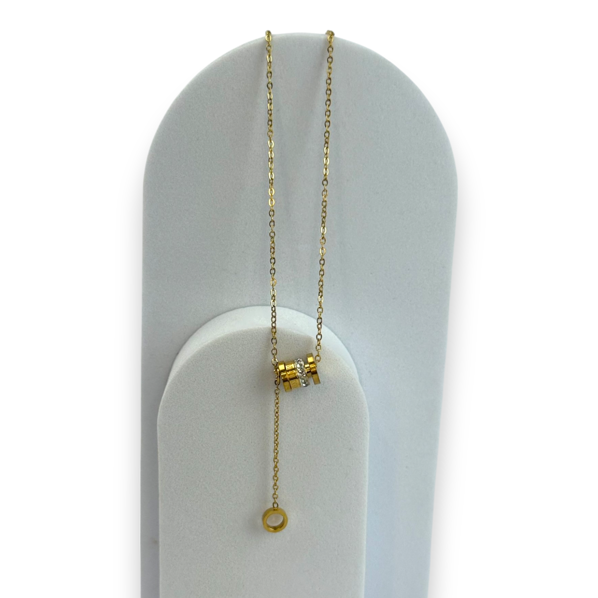 Χρυσό κολιέ από ατσάλι με κυλινδρικά στοιχεία και κρεμαστό κύκλο.